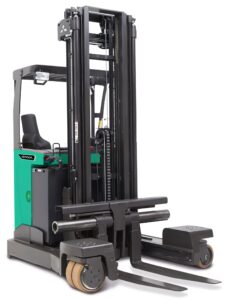 Carretilla VNA ágil y ergonómica, combina eficiencia de VNA y retráctil, optimizando espacio y operaciones en almacén.