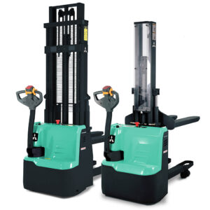 Apilador compacto y resistente, con manejo seguro y cómodo, modos ECO y PRO, mínimo mantenimiento y alto rendimiento en pasillos estrechos.